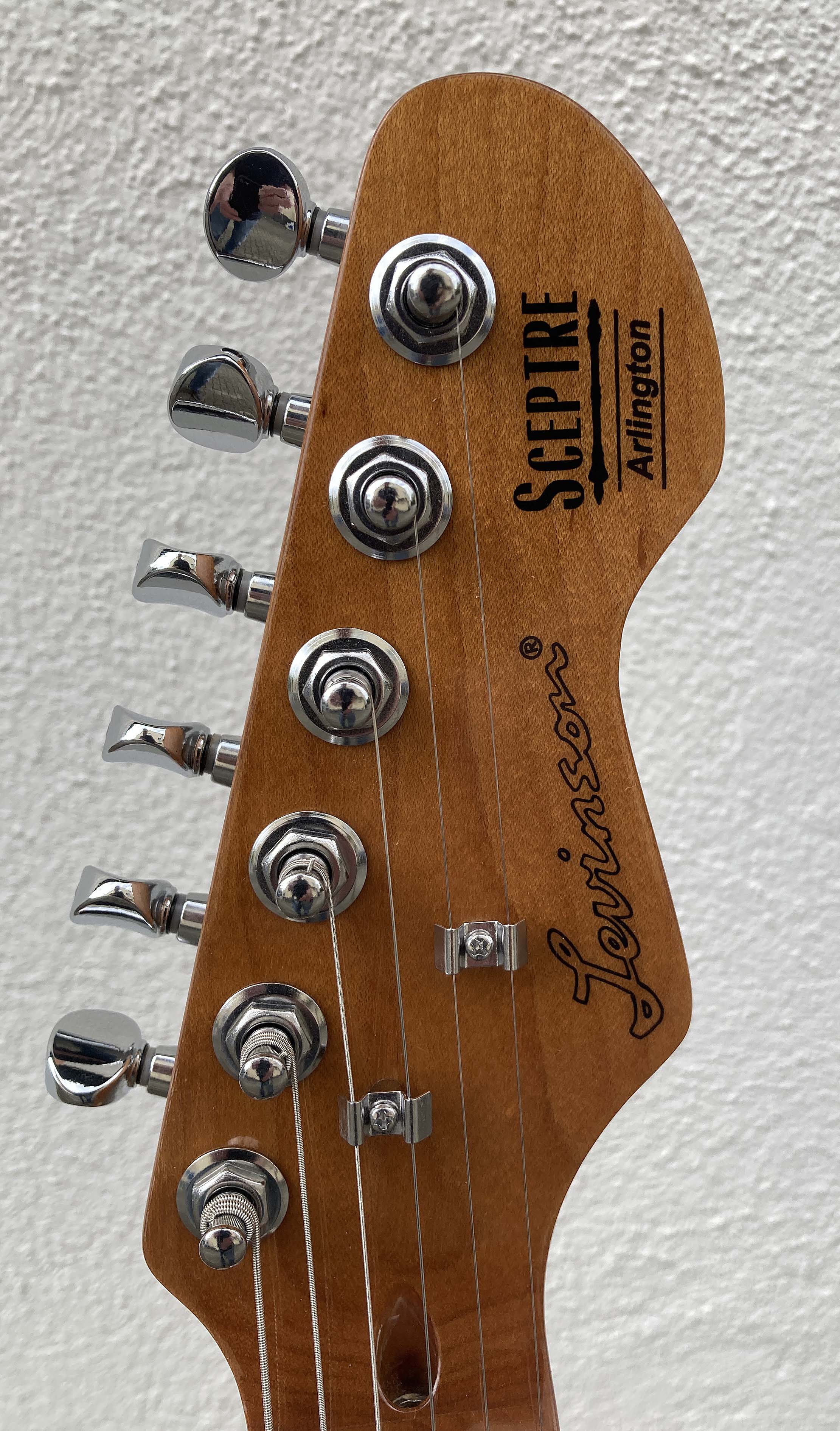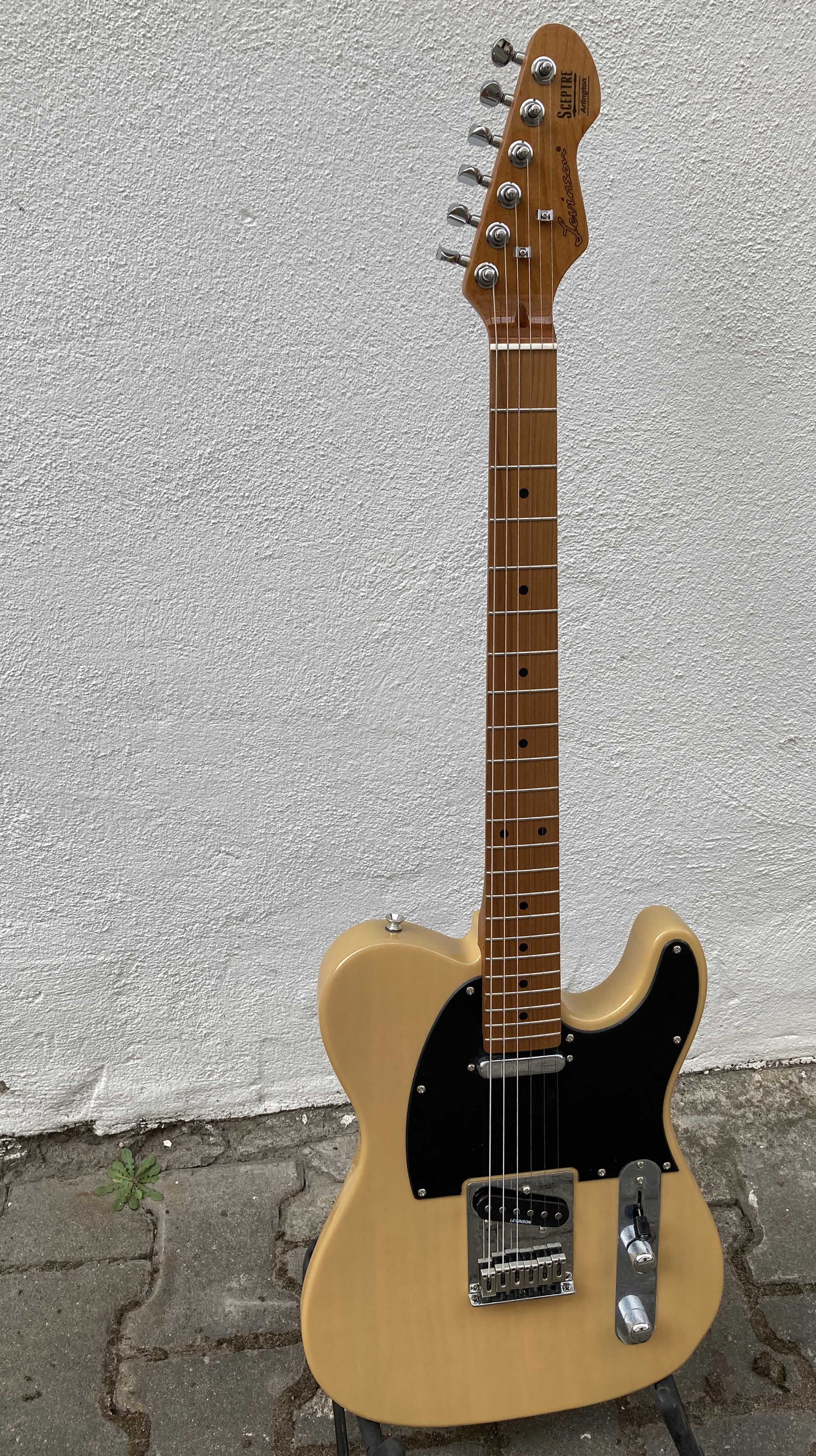 Hersteller: Levinson SceptreModell: Gen II – Arlington Standard SA1 BLDE MSie klingt so, wie ich das von einer traditionellen Tele erwarte, giftig am Steg, bluesig warm am Hals und glockig hölzern in der Mitte.